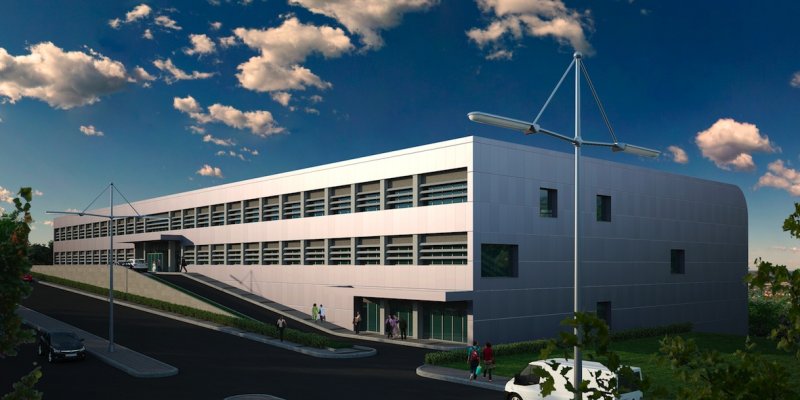 Yapı, aluminyum kompozit panellerle kaplanmıştır. Caddeye bakan giriş (güney) cephesinde kullanılan yatay güneş kırıcılar, yapının az katlı, yatay ifadesini daha da güçlendirmektedir.