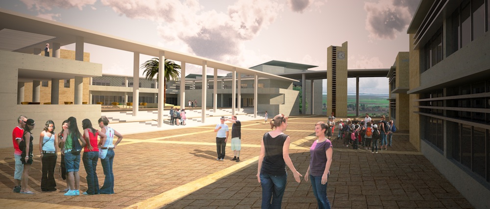 Arazinin sınırlı büyüklüğü ve eğimli coğrafyası nedeniyle kampus programının büyümesi söz konusu olmayacaktır. Ancak, kampusun tek seferde inşa edilmesi yerine, önerilen master plan, kısmi ve zaman içinde nihai büyüklüğüne ulaşacak şekilde etaplanmasına imkan vermektedir. Kampus arazisine giriş kuzeydoğu ucundaki Kuzey Kapısı’ndan olmakta, önerilen bir ring yolu tüm arazi sınırından dolanarak tekrar girişe bağlanmaktadır. Öğrenci, öğretmen araçları ve servis araçlarının bağlantıları çevre yolundan oluşturulan otopark ceplerinden olmakta, böylece orta aks sadece yayalar için ayrılmış bulunmaktadır. Sosyal Merkez ile Kütüphane arasında kalan Kampus Meydanı, kampüsün en önemli açık alanıdır. Burada bir Saat Kulesi düşünülmüştür. Bu kulenin aynı zamanda bir “landmark” olarak da işlev görmesi söz konusudur. Yaya allesinde, yaya yollarını ve meydanları tarifleyen gölge verici ağaçlandırma ve peyzaj çalışması yapılacaktır. Yaya yolları ve meydanlarda kesme taş bordürlü, düzgün kesilmiş granit parke taşı kaplama düşünülmektedir. Arazinin boş kalan alanlarında yoğun ağaçlandırma ve yatay yeşil örtüsü düşünülmektedir. Bu ağaçlandırmanın endemik bir tür olan zeytin ağacı olması düşünülebilir. Böylece kampusun döner sermayesine de katkısı olacağı da kaçınılmazdır.