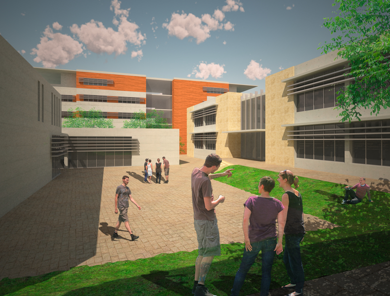 Hatay kentsel mimarisinde avlulu evlerin ve dar sokakların egemen olduğunu görüyoruz. Bu yörede dar sokaklar, sokakların üzerine gerilen tenteler, avlulu evler, sokağa kapalı, avlulara açık cepheler, avlularda su ve ağaç kullanımı yaygındır. MEB Kırıkhan Kampüsünde Hatay’a özgü bu mevcut dokudan esinlenilmiş, dış mekanlar, yapılar arasındaki yaya bağlantıları, meydancıklar, üstü kapalı geçitler, yer yer güneşten koruyan saçak ve pergolalarla tariflenmiştir. Güney kuzey aksında esen serinletici rüzgar, yaya allesinden geçerek konfor seviyesini yükseltmektedir.