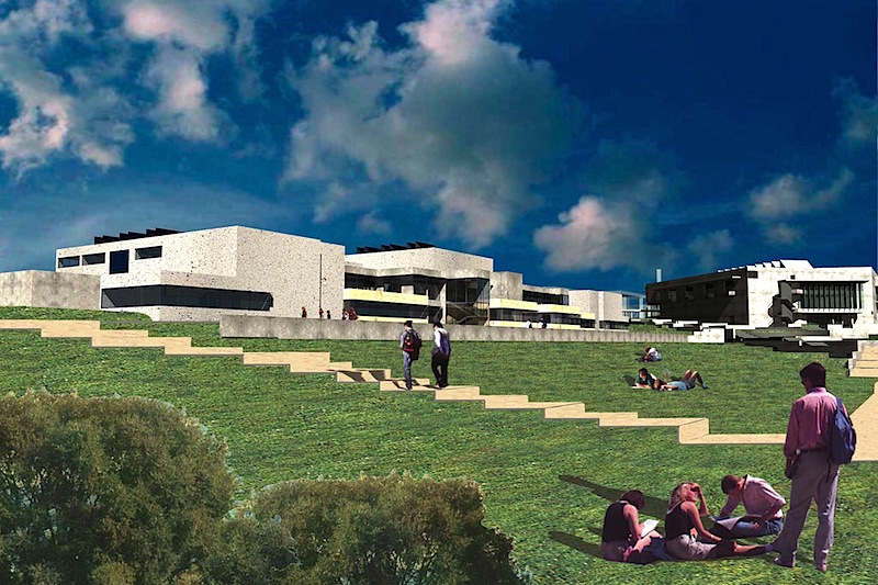 ODTÜ Kuzey Kıbrıs Kampusu içindeki pek çok yapıdan kolaylıkla algılanabilecek bir konuma sahip olan Laboratuarlar Bloku’nu, kademeli olarak, arazinin silüetini bozmadan ve daha ufak laboratuar kitlelerini vadiye baktıracak şekilde yerleştirmek temel tasarım kararı olmuştur. Laboratuarların vadiye bakan cephelerinde yapı kütlesi, önde küçük ve orta boy laboratuarlar, düşey dolaşım elemanları, arkalarında şeffaf dolaşım omurgası ve en geride ise büyük laboratuarların yer alması ile ölçek olarak kırılmış ve böylece laboratuarların geleneksel iri cüsselerini geride saklamaları mümkün olmuştur. Yurtlar ve dersliklerden gelecek öğrencilerin Kongre Kültür Merkezi önündeki açık amfi kotunu yakalayarak laboratuarlara ulaşması ve daha sonra ileride batıda yapılacak yeni binalara da ulaşması planlanmıştır.