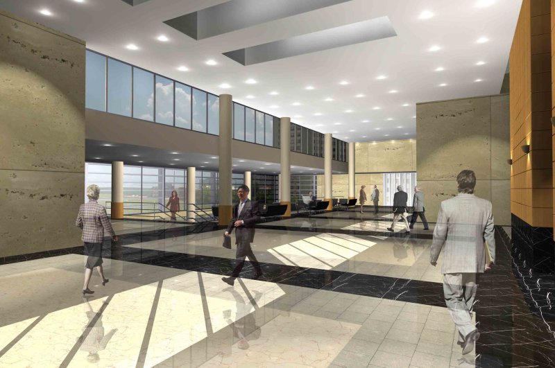 Fuaye, manzaraya bakan güney cephesinde iki kat yüksekliğinde bir galeri boşluğu ile sonlanmakta, katlar arası ana bağlantılar da (merdiven ve asansörler) bu noktada düğümlenmektedir. Fuayenin bol ışıklı bir mekan olmasına özen gösterilmiş; bu amaçla hem çatı fenerleri kullanılmış, hem de tavanların kot farklarından yararlanılarak yan yüzeylerin üst kısımlarından fuayeye doğal ışık alınmıştır.