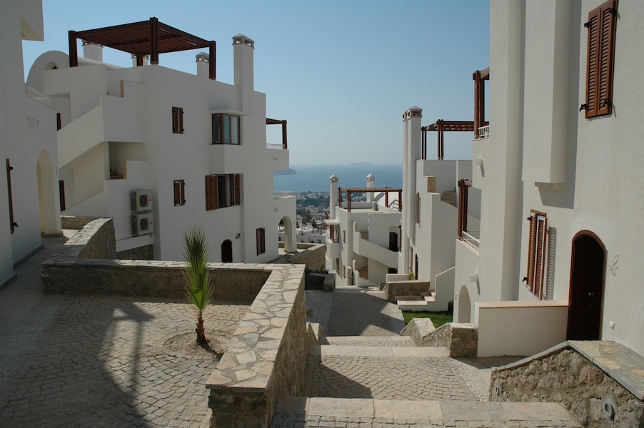 Turgutreis Karabağ semtinde toplam 4500 m2lik iki parsel üzerinde planlanan Konak Yerleşmesi, denizi gören, dar ve eğimli bir arazide 5 apartman tipini içeren 13 bloktan oluşmaktadır. Her blok 2 katlı olup, eğimden kat kazanmaktadır. Her katta 2 şer daire vardır; daireler 65-100 m2 arasında 2 ve 3 yatak odalı olarak tasarlanmıştır.