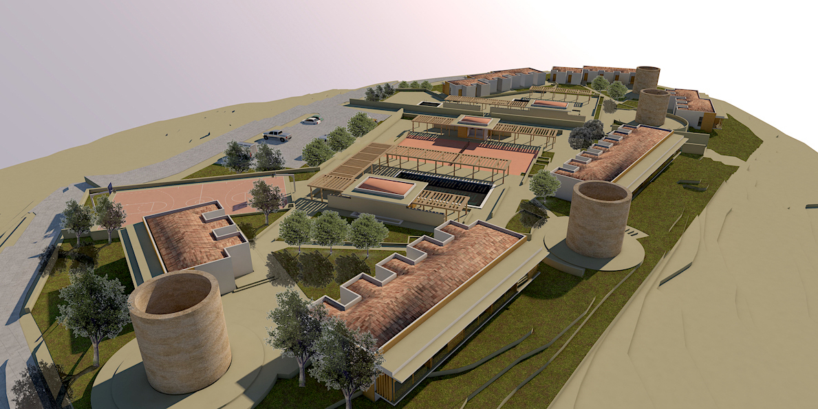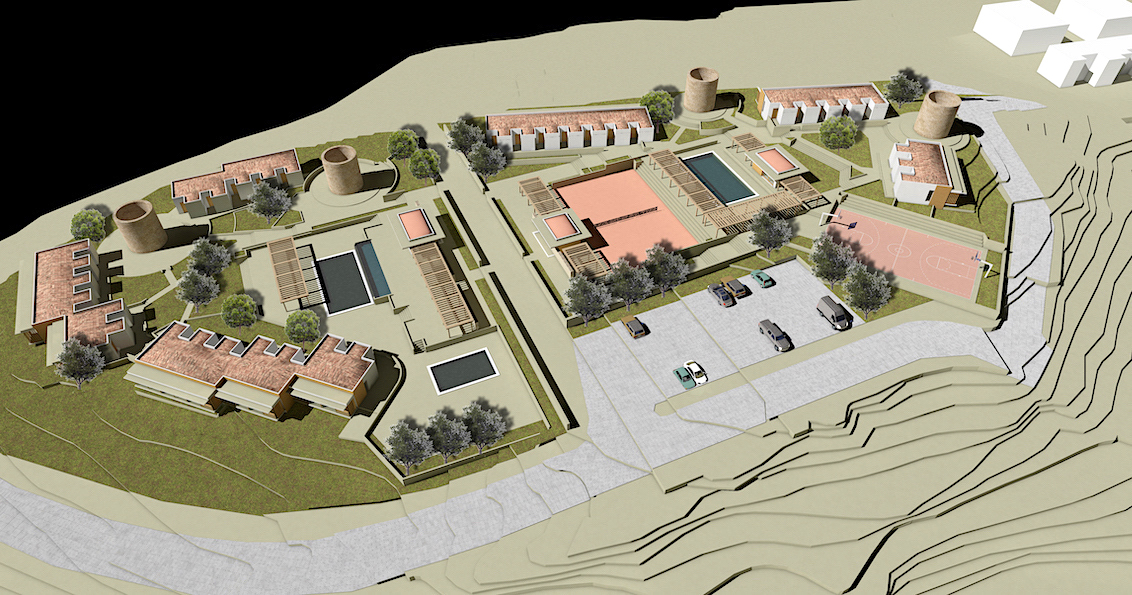 Tüm vaziyet planında, arsaların topografik yapısı olabildiğince korunmuş ve kademelenmeler, merdivenler, teraslar, amfileşmeler ve yaya yolları ile çevre düzenlemesi yapılmıştır. Ticari üniteler, arazinin azami kullanımını sağlamak amacıyla arsanın kenarlarına çekilmiş, böylece hem ticari ünitelerin manzara görebilmesi, hem de ortada kalan arazide sportif ve sosyal etkinliklerin yer alabilmesi mümkün olmuştur. Adanın hemen dışında kalan ve imar planında otopark olarak gösterilen alan, her iki adanın otopark ihtiyacını karşılayacaktır. Adaların ortasından geçen yol, her iki parsele de giriş imkanı sağlamaktadır.