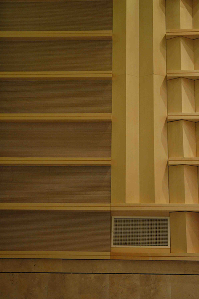 ODTÜ Kuzey Kıbrıs Kampusu Kültür ve Kongre Merkezi seminer ve konferansların yapılacağı, özellikle de seremonilerde kullanılacak bir yapı olarak yarışmaya çıkarılmıştı. Ancak yapının içinde yer alan 600 kişilik Büyük Salon’un sadece kısıtlı amaçlara hizmet etmesi yerine ufak çaplı olsa, oda müziği ve caz konserlerine de olanak tanıması için dekorasyonunda salon akustiğinin de dikkate alınmasına Rektörlük ikna edilince, Büyük Salon’un akustik hesapları yapıldı ve dekorasyon bu hesaplar gözönüne alınarak son halini aldı. Salonun yan duvarlarında sesin kırılıp dağılmasını sağlamak amacı ile katlanabilir akçaağaç kaplamalı ahşap paneller kullanıldı. Kapalı iken müzik, açıkken konuşma frekanslarına ayarlı olan bu kapaklar reverberasyon (çınlama) sürelerini değiştiriyor. Tamamen motorize olarak açılıp kapanması öngörülen bu kapaklar maliyet nedenleri ile manuel kullanıma dönüştürüldü. Altta cilasız delikli traverten, üstte alçıpan kaplama kullanıldı. Arka yüzeylerde ses yutucu olması nedeni ile Topakustik muadili paneller ve tüm duvarlarda Ecophon muadili yine ses yutucu malzemeler tercih edildi. Asma tavanda, alttaki radyal oturma düzenini yansıtan alçıpan yüzeylerin arasında yer alan çeviz boyalı ahşap çıtalara yer verildi. Asma tavanın üzerinde çok ciddi bir kedi yolları sistemi tasarlandı.