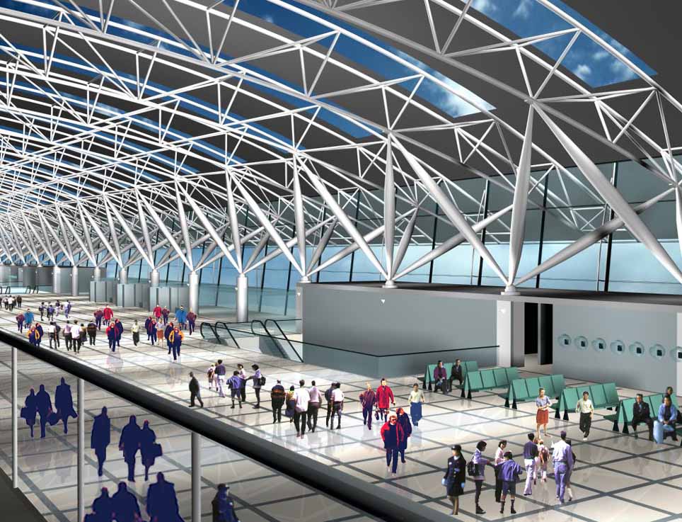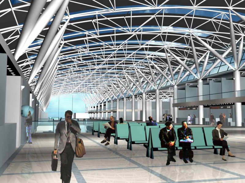 Ana terminal yapısının çatı örtüsünü yuvarlak boru kesitli 3 boyutlu bir makas niteliğindeki uzay kirişler oluşturmaktadır. Hava tarafında ise çok daha sade ve işlevsel; büyüme, esneklik ve kolay inşa edilebilme özellikleri olan tek yönlü bir çelik makas sistem yer almaktadır.