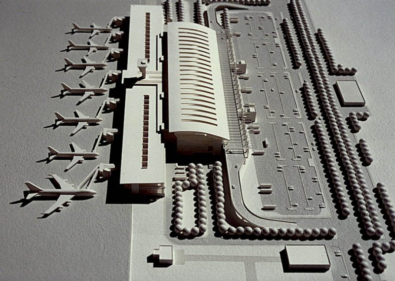 İki ana kitleden oluşan yapının çatı şekillenmesine temel olan 'uçuş' metaforu ile birlikte gelen ve özellikle kesitlerde ifadesini bulan dinamizm, klasik anlamda görkemli iç mekan anlayışını tekrar canlandırma arzusuyla bütünleştirilmiştir. Aynı dinamizm, daha yalın bir biçimde yapının hava tarafını oluşturan bekleme salonları ve gate'leri örten çatıda devam etmiş ve orta aksın sonunda yer alan cafe'de nihayetlendirilmiştir. Otopark terminal ilişkisi +4.45 kotundan ve otoparktan kapalı köprüler aracılığı ile olmaktadır.