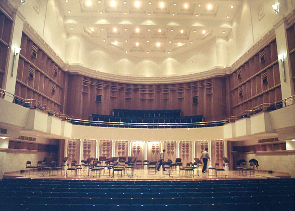 Müzik Fakültesi , Büyük Konser Salonu, Tiyatro binası projeleri ile birlikte, ileride oluşması öngörülen Bilkent Sanat Merkezi'nin bir parçası olarak ele alınmıştır. Yapının en çok uğraşılan kısmı konser salonu olmuştur. Müzik Fakültesi içinde yeralan konser salonu ilk başta mütavazi ölçülerde bir 'uygulama salonu' olarak ele alınmışken, sonradan sayın Prof. İhsan Doğramacı'nın istekleri doğrultusunda ve çok daha geniş kitlelere hizmet edebilecek bir konser salonu olarak büyütülmüştür. Salonun dekorasyon projesi her adımda akustik gereksinimler gözönünde tutularak 6 ayda tamamlanmıştır. Salonda 1.8 ile 2.0 arası reverberasyon zamanı elde edilmiş olup, duvardaki hareketli ahşap panolarla oda müziğinden koro eserlerine kadar ince ayar yapmak mümkün olmaktadır