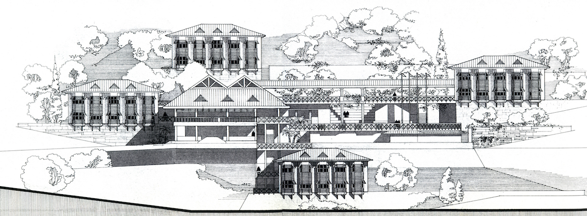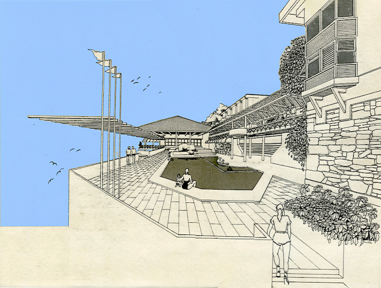 Kaş Oteli’nin üzerinde tasarlandığı arazi, güneye bakan ve Bucak Koyu, Çukurbağ Yarımadası ve Kaş’ı görebilen bir konuma sahiptir. Yazın serinletici güney rüzgarına açık olmakla birlikte çok dik (%70) ve kayalık olup, denizden 70 metre yükseklikte yer almaktadır. Tasarımın ana teması, evleri, sosyal ve ticari işlevleri ile köy meydanı ve bunları birbirine bağlayan yaya yolları ile bir Akdeniz köyü üzerine kurulmuştur. Projede yatak odalarını içeren bloklar, birbirlerinden kopuk ve arazinin eğimine uygun olarak yerleştirilmiş pavyonlar şeklinde ele alınmıştır. Özellikle yatak bloklarında Kaş mimarisinin ahşap cumba, saçak gibi yerel özellikleri projeye yansıtılmaya çalışılmış ve odaların tek taraflı yerleştirilmesi ile serinletici rüzgarın etkisinden yararlanma amacı güdülmüştür.