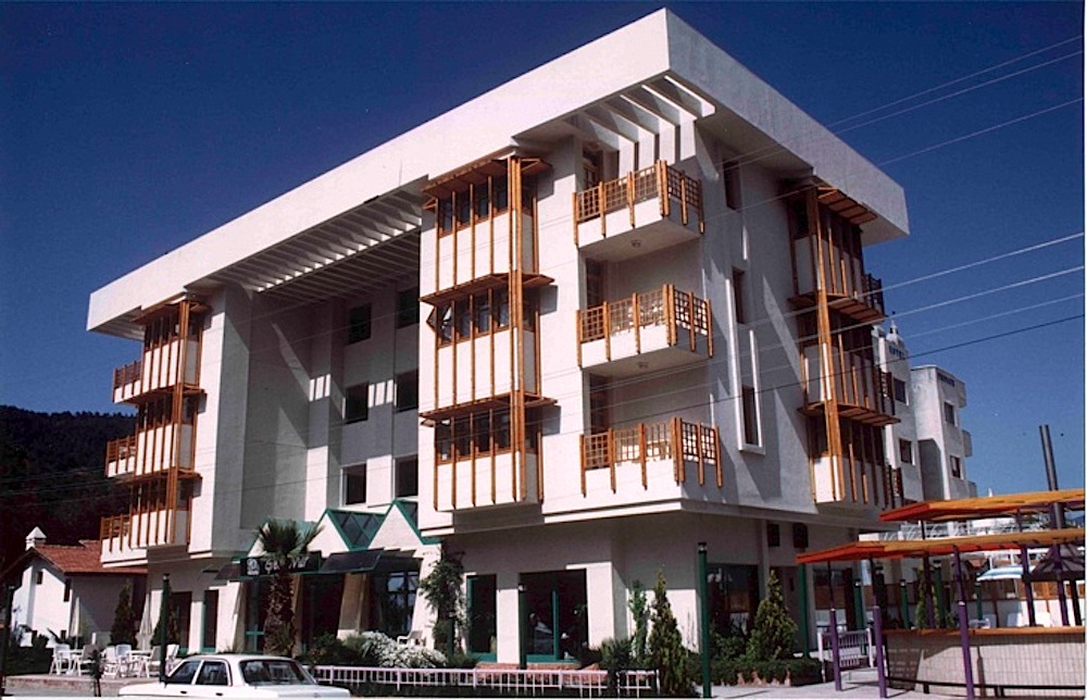 Bu küçük otelin tasarım sürecinde uğradığı program değişiklikleri, niteliğinin otel ile apart otel arasında gidip gelmesi, parsel büyüklüğünün değişime uğraması gibi nedenlerden dolayı yapı ilk tasarlandığı şekilde bitmedi. Ayrıca mal sahibinin de inşaat süresince yaptığı değişikliklere rağmen (örneğin cumbaların ahşap kaplanmaması), tasarımın ilk baştan beri gelen ana fikri değişmedi; yapının sokaktan içeri çekilmesi ile oluşan giriş mekanının üzerini örten beton pergola, serinletici rüzgara açık koridorlar ve cumba motifi gibi ögeler sonuna kadar devam etti.