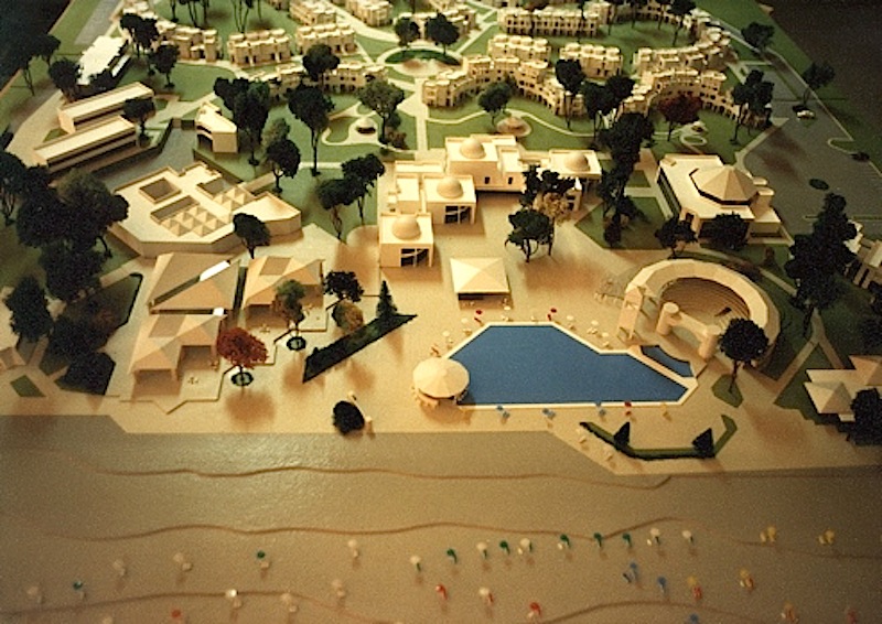 Simena Tatil Köyü’nün denize bakan cephesinde tasarlanan restoran ve servis bloku ile açık amfi, havuz ve girişte yer alan resepsiyon yapıları, iklimsel ve çevresel koşullar ile bir tatil köyünde aranan vasıfların bir sentezi niteliğindedir. Mimari ögelerin birlikteliğinin yaratacağı görsel ve mekansal zenginliğin yanısıra, güneşten korunma, serinletici rüzgardan yararlanma gibi doğal koşullara uyma çabaları da projenin tasarlanmasında etkili olmuştur.