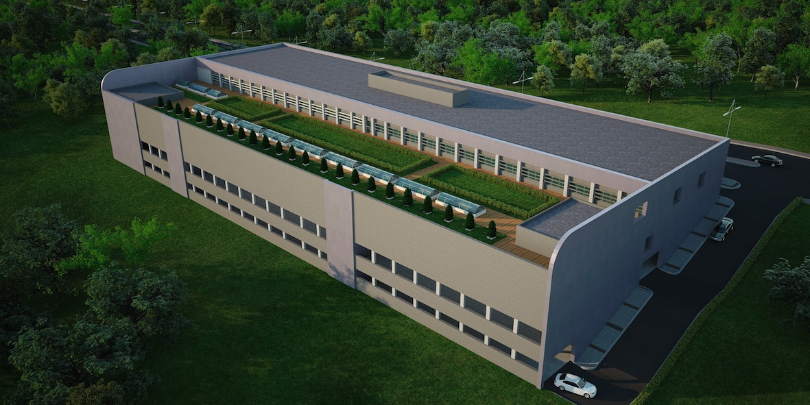 The first floor is reserved for patients’ rooms. There are 24 rooms for children, 12 rooms for male and 12 rooms for female patients. The wards floor has been conceived as a double corridor plan, with the service core extending in the center. The main circulation elements (stairs and lifts) open to an elevator lobby, which overlooks the entrance hall area on the ground floor, through a gallery opening below. Male and female patients’ rooms face south, while children’s rooms are oriented towards north. Since these rooms face the roof terrace, the terrace has been treated as a green area, so that children will be looking at a landscaped surface. The east and west side parapets have been kept high, at the level of the wards’ floor roof parapets, thus creating an enclosure, almost like a semi-enclosed courtyard. These walls also hide the protruding roofs and mechanical equipments of the operating theaters and the linear accelerator room, from the exterior. On the terrace, there are also the skylights getting natural to the main corridors below.