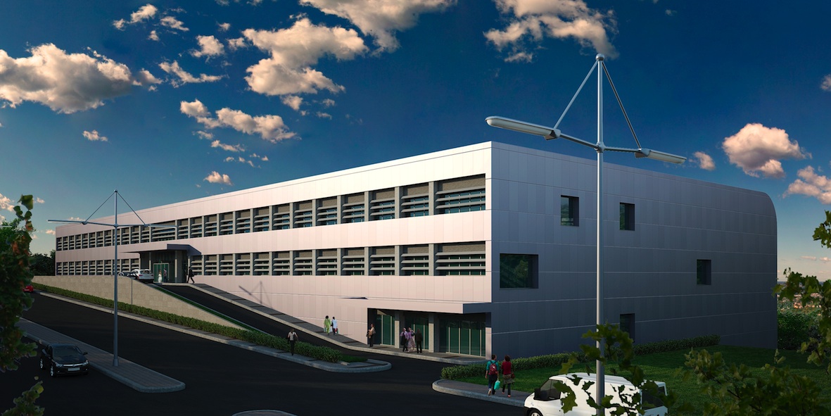 The 50 Beds Cancer Disease Center is a 2 storey building, with 2 basements, designed on a site with sloping topography mainly towards the east. The slope of the site has made it possible to organise the hospital, so that different entrances were planned for different functional uses without any unnecessary excavations or fills.