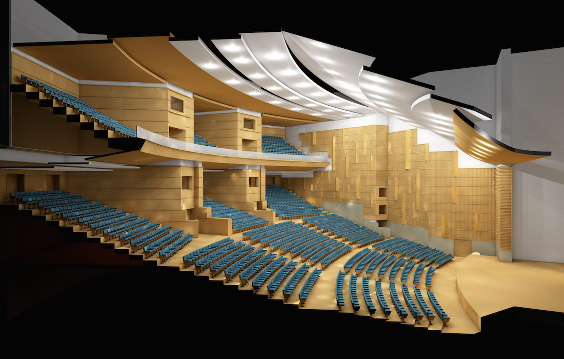 In the design of the interior of the main hall, one of the main assumptions was that it should serve not only for congresses but also for musical events such as concerts, as well. Therefore, all the acoustic calculations and modelling were prepared based on this assumption. Since the plan was already fixed and could not be altered, the only parameter left to change was the section of the main hall and the materials to be utilized on the walls, ceiling and the floor. Thus the suspended ceilings were raised to acceptable heights according to the acoustical contour calculated and cat walk galleries were integrated to the system.