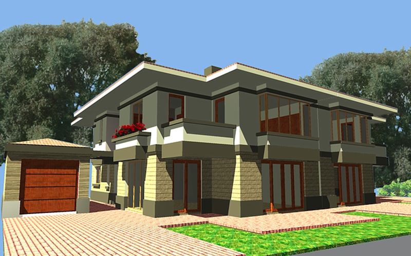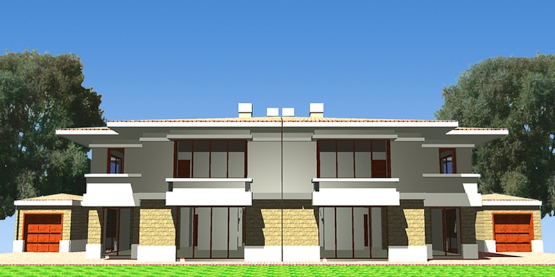 In the generic plan, the staircase has been placed at the heart of the plan, thus creating a spacious, long-thin house with a void adjoining the stairs. In the twin-house, such an arrangement permits more light to the center of the house. Entraces have been placed at the sides, thus creating a stronger privacy zoning with the separation of the living room from the daily room and the kitchen.