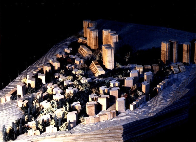 The site has a wonderful view towards the Marmara Sea and the Princess Islands. The plateau on the eastern end of the site is dominated by the 25 storey twin plaza blocks and the 12 and 5 story crescent blocks. Lining the topographical threshold to the west of the plaza are the 24 storey sera (greenhouse) blocks and terrace housing. Along the two roads, row housing is located. Lining the middle of the main roads are the triplex villas.