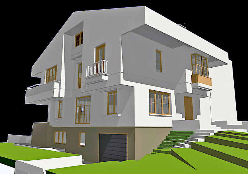 Designed on a corner lot in Beysukent, Ankara, this house was to replace an existing building. The project was altered many times during the design process in accordance with the clients’ wishes. All the service areas have been placed against the adjoining building; this way the other three orientations have been left open to the street and garden views. Although construction drawings were completed and all the necessary municipality permits were obtained, the building was not built.