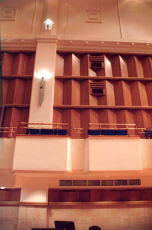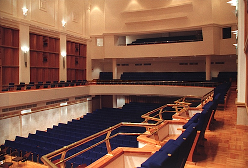 As a result of extensive research and detailing, a reverberation time between 1.8-2.0 has been achieved. Subtle variations from chamber music to chorall pieces can be made by adjusting the folding wooden panels on the walls.